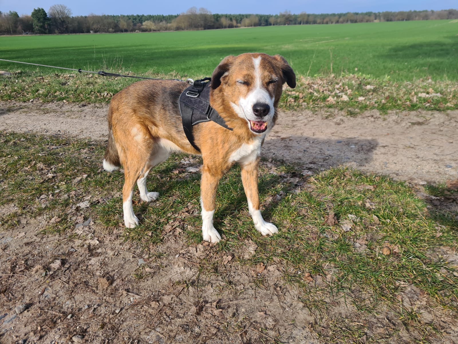 Trotz ihres Alters geht Muggets gerne spazieren, braucht aber keine langen oder anstrengenden Strecken mehr. Viel wichtiger sind ihr ein ruhiger Alltag, liebevolle Ansprache und ein sicherer Platz, an dem sie ankommen darf.
