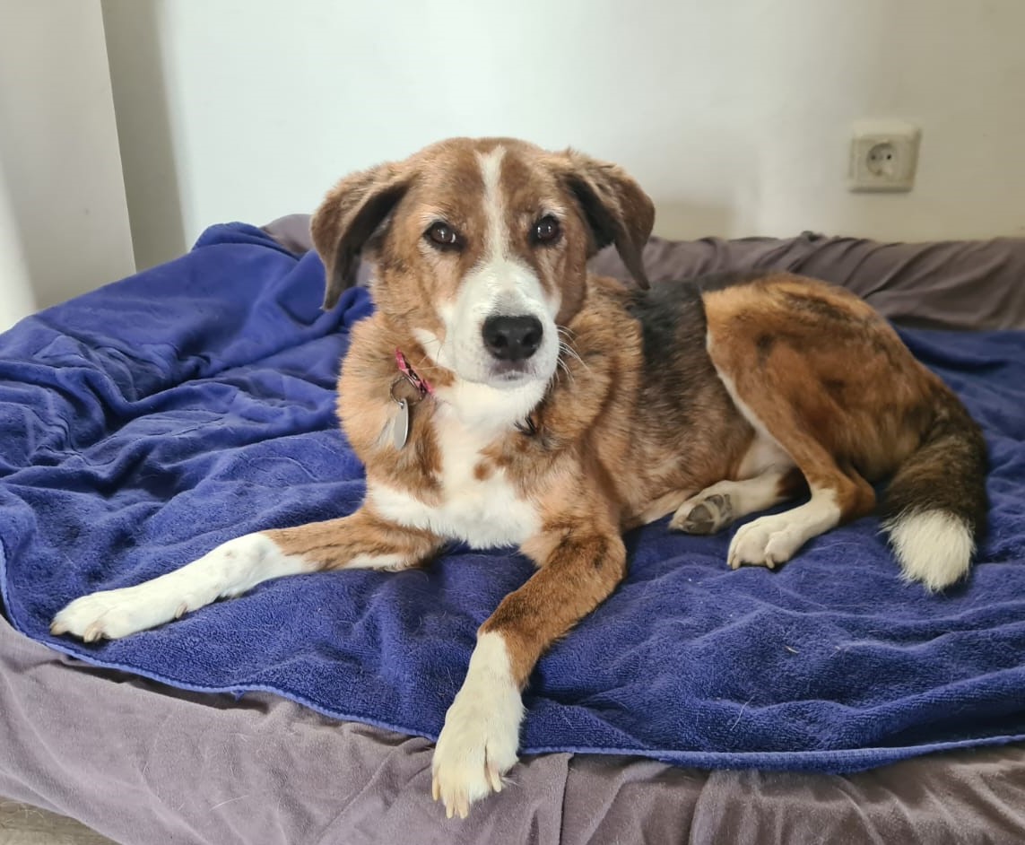 Für Muggets wünschen wir uns ein entspanntes, ebenerdiges Zuhause mit Garten – dies ist Voraussetzung für ihre Vermittlung. Menschen mit Geduld, Herz und Verständnis für eine ältere Hündin würden ihr helfen, wieder Vertrauen zu fassen und zur Ruhe zu kommen.